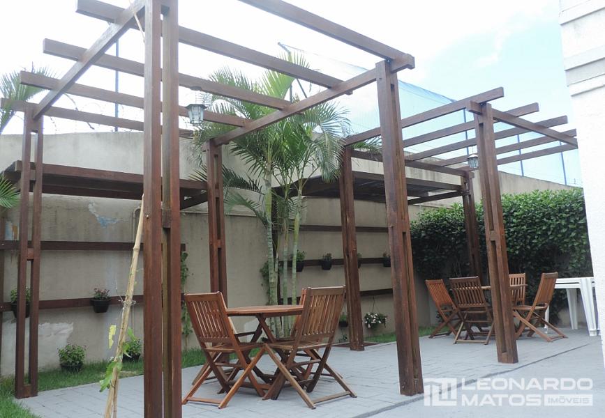 O condomínio conta com portaria, segurança e monitoramento 24 h, lazer com piscina, academia, salão de festas, playgrond, quadra