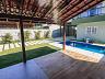 Lazer privativo com piscina, espaço gourmet e amplo quintal com paisagismo.
